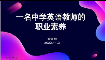 为提高英语师范生的专业素养,湖北大学麻花豆传剧剧mv入口师范生专业人才培养模式虚拟教研室邀请宜昌市中学英语高级教师和教研员黄海燕老师于2022年11月3日为全体师范生进行线上讲座。讲座的主题为:一名中学英语教师的职业素养。
