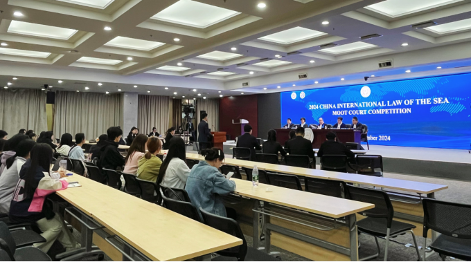 半决赛于上午8点30分拉开序幕,五位法官庄严入场,一场围绕海底沉船案的模拟庭审正式开始,各参赛队伍依次展开抗辩。经过激烈的角逐,中国政法大学与华东政法大学两支队伍脱颖而出,进入下午的总决赛。前国际海洋法法庭法官、现任中华海洋法学会会长高之国担任总决赛法官。决赛中,选手们均展现了出色的法律素养和英语语言能力,使见习的学生印象深刻。