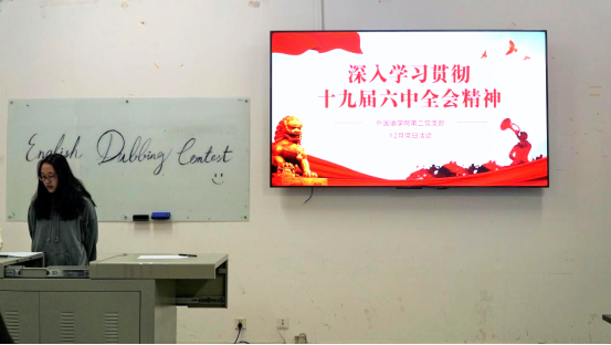 此次主题党日示范活动是学院加强学生党建的一次实践创新,希望通过富有专业特色的双语互动形式,推进党的十九届六中全会精神学习贯彻在同学们中走深走实,同时进一步提高同学们的专业学习兴趣,积极开拓学院学生党建工作新途径新方法。