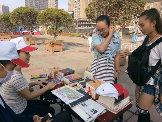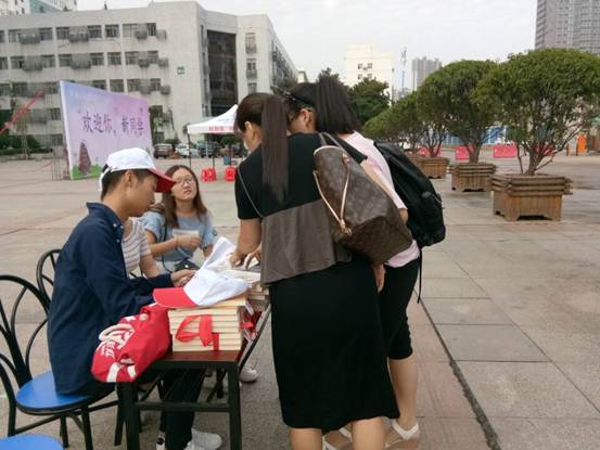 9月7日17级新生正式到校报道。为迎接新生的到来,湖北大学麻花豆传剧剧mv入口志愿者协会在思睿广场开展了以“欢乐迎新季,书香传递爱”为主题的特色志愿活动。