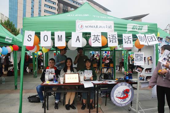 10月27日上午九点,湖北大学校本部的“百团大战”在图书馆前求索广场拉开帷幕,97个风格迥异的社团参加了此次的社团招新。其中包括麻花豆传剧剧mv入口下属的四个社团——SOMA英语话剧团、樱花俱乐部、爱希美特法语协会和英语广播台。