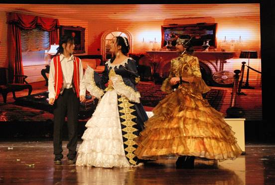 SOMA为观众献上的第一部戏是莎翁喜剧《温莎的风流娘儿们》。故事讲述了两位机敏的太太教训嗜财贪色的约翰·福斯塔夫爵士,戏弄猜忌心重的丈夫的故事。17级法语郑旭元出演了约翰爵士这个人物,他说着一口流利的英腔,做着浮夸的动作,观众大赞演得到位。