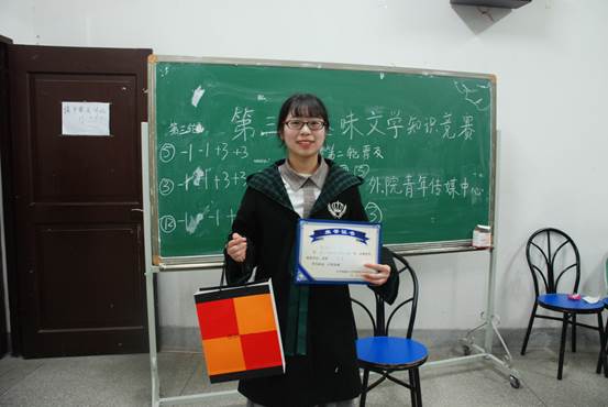 第二轮轮流答题,每组自由选择题目难度,一级难度题目答对积一分,二级难度题目答对积两分,答错不扣分。选手们渐入佳境,实力不相上下,连续答题三回合才决出晋级组别。第三轮举牌抢答,比赛进入个人赛阶段,没人答对一题积三分,答错一题扣一分。现场弥漫着紧张气氛,三名选手争相举牌抢答,并作出慎重选择。经过激烈角逐,最终外院2016级英语专业张玖获得第一名。