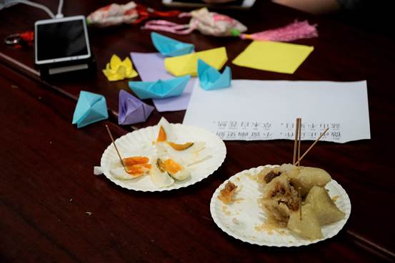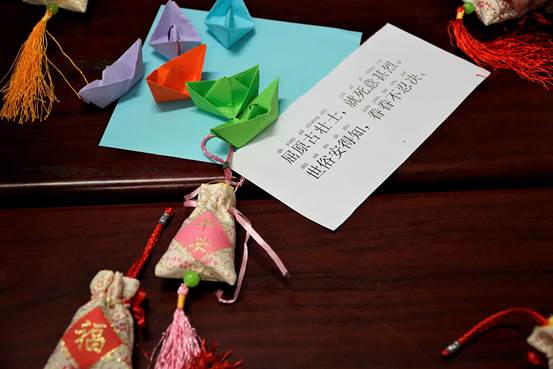 来自国际教育学院同学在SOMA成员的帮助下用五颜六色的彩纸叠出各式各样的龙舟船,随后又将精心准备好的玫瑰、艾草 、薰衣草混合灌入香袋中制作除厄运的香囊,竞技朗诵古诗感受中国传统文化的魅力,最后分享音乐的同时又尽情品尝了端午传统食物粽子与咸鸭蛋。