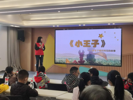 首先开始的是“影片赏析”活动。结合有趣的动画,志愿者向小朋友们讲解《小王子》影片中的唯美故事。
