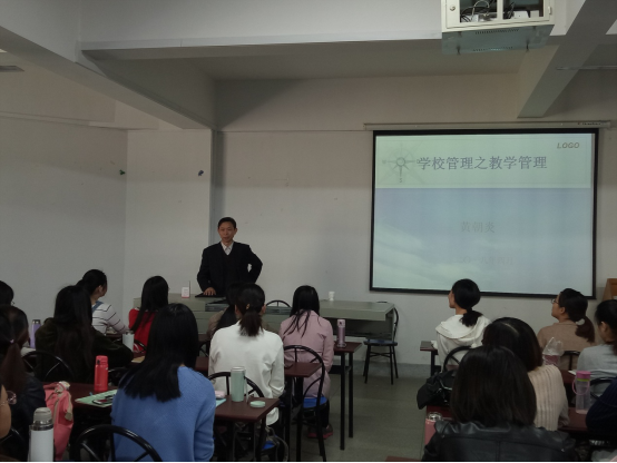 讲座第二部分主题为学校的教学管理。黄教授首先教学管理的目标在于提高教学质量。而关于教学质量的含义,一方面包括基本目标:德、智、体全面发展,另一方面则是追求培养高素质人才。与此同时,他还指出针对不同目标提高教学质量的方法与途径,其中包括严格执行上级文件进行课程设置、考核与评价及第二课堂等。
