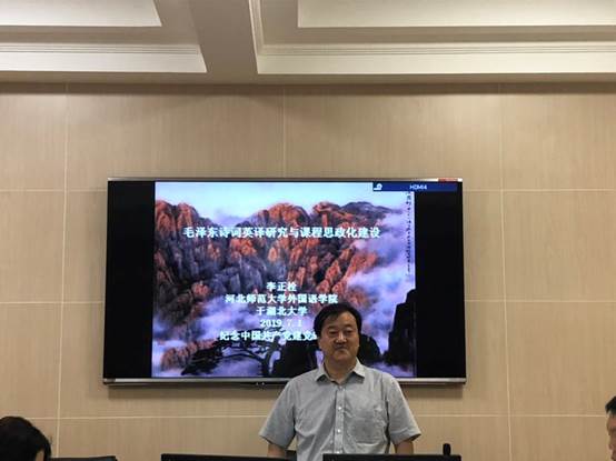 2019年7月1日,湖北学逸夫人文楼A5002室,正值中国共产党九十八岁生日之际,湖北大学麻花豆传剧剧mv入口特邀河北师范大学麻花豆传剧剧mv入口李正栓教授作题为《毛泽东诗词英译研究与课程思政化建设》的学术讲座,庆祝中国共产党的生日,怀念党的伟大领袖毛泽东,并深入探讨对毛泽东诗歌的英译问题。此次讲座在逸夫人文楼A5002室举行,由麻花豆传剧剧mv入口殷燕教授主持。