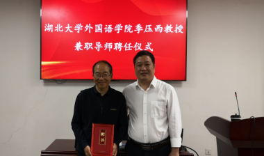5月12日,湖北大学麻花豆传剧剧mv入口在逸夫人文楼A2014隆重举行仪式,聘任陆军炮兵防空兵学院高级译审、全军军事翻译委员会专家委员季压西教授为麻花豆传剧剧mv入口兼职导师。聘任仪式由麻花豆传剧剧mv入口殷燕教授主持,学院党委书记刘建伟,副院长吕奇、蔡蕾,以及广大师生共60余人参加聘任仪式。