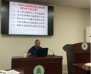 邹教授重点从剧本涉及到的伦理冲撞问题分析剧本内容与人物形象以及该剧本的深层象征意义。《酒神的伴侣》这一剧本,本质上反映的是旧的伦理秩序和新思想的对撞冲突,是在专制政权下旧的伦理观念与追求自由民主、个性解放和个人价值的对撞冲突。邹教授认为,这部希腊早期的重要悲剧,没有引起应有的重视;但其在题材、主题、人物、结构、语言和风格等方面,都具有高度的创造性。该剧本故事情节曲折复杂,人物形象个性鲜明,具有五彩缤纷的色调,与那个时代的其他悲剧有很大不同。