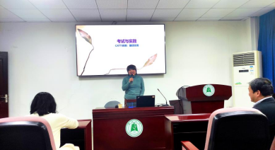 王老师结合自身数十年的工作经历,从CATTI阅卷、学习与思考、翻译实践等方面展开交流。王老师表示,讲好中国故事是国际传播的重要使命,也是译者肩上的重要责任,要注意内宣与外宣在用词上的差异,重视同外籍专家讨论的过程,对比差距。王老师指出,国际传播中的汉译英翻译实践对译者的翻译基本功、工作习惯提出较高要求,如何应对受汉语思维方式或文化影响的中式英语、英汉语思维转换等是重中之重。王老师鼓励大家要练好基本功,养成听、说、读、写的好习惯。王老师认为,全国翻译专业资格(水平)考试(CATTI)是国内最具权威的翻译职业资格考试,对三级汉译英笔译实务考试要求的分析,有助于培养学生的国际传播意识、高效应对CATTI考试。