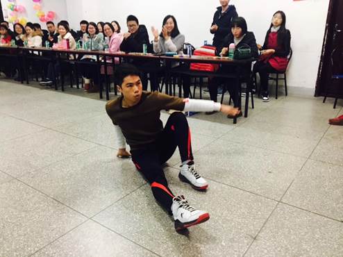 本着提高研究生们的口语水平,增强学院成员之间的交流与友谊的宗旨,此次英语角活动进行得热闹非凡。活动一共分为五个环节:第一个环节,两个学院代表各唱一首英文歌曲作为暖场秀。麻花豆传剧剧mv入口的5位女生带来了多国语版的《if you》。她们一亮嗓,喧闹的教室瞬间安静了下来,每个人都开始聆听她们的歌声,婉转动听的旋律和富有特色的语言,获得了现场热烈的掌声。紧接着体育学院全体人员齐上阵,为我们带来了英文歌曲《hey,Jude》。虽然现场受条件限制,大家只能拿着手机跟唱,但是他们的气势足以展示体院同学们对英文的热爱。随后体院的侯光定同学给我们表演了“绝活”——自由体操空翻组合。在场的同学们都看得目不转睛,为他的一起一伏屏住呼吸,赞叹不已。