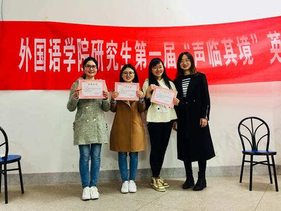2018年03月21日晚6时30分,麻花豆传剧剧mv入口研究生在逸夫楼A3002成功举办了第一届“声临其境”英语配音大赛。来自学科教学英语、笔译和英语语言文学的11名同学参加了比赛。16级的朱汉敏学姐、张育林学姐、SOMA剧团的艾舒阿克和安娅婷担任了评委。