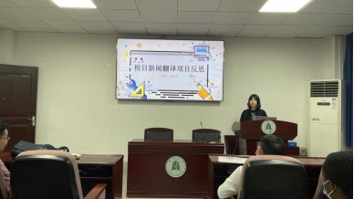 指导老师代表陶然老师发表心得,讲解指导修改过程。陶老师结合自身的口译员经验,鼓励同学们把握这一市场历练机会,在目前风险较小的情况下丰满羽翼,体验市场竞争,感受市场压力。就学生译稿中存在的共性问题,陶老师还从个人的词汇、句法使用,到团队配合和协作,从文化差异到语言结构,从搜集信息到积累经验都做了详尽说明,令在场的同学们受益匪浅。