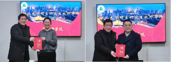 会上,杨小彬副院长宣读了关于学校关于聘任陈卓国等5位教育硕士校外导师和林世宋等11位MTI校外导师的决定。学院党委书记刘建伟为两位校外导师代表现场颁发聘书。