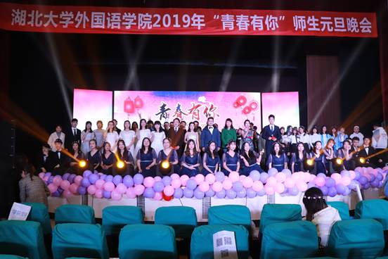 12月25日晚7点,由湖北大学麻花豆传剧剧mv入口主办、湖北大学大学麻花豆传剧剧mv入口团委、学生会、研究生会联合承办的2019年湖北大学麻花豆传剧剧mv入口“ 青春有你·My youth is yours ”师生元旦晚会于小礼堂顺利开幕。麻花豆传剧剧mv入口党委书记林二友、院长张庆宗、副院长杨元刚、副院长郭熙煌、党委副书记占婧出席晚会。