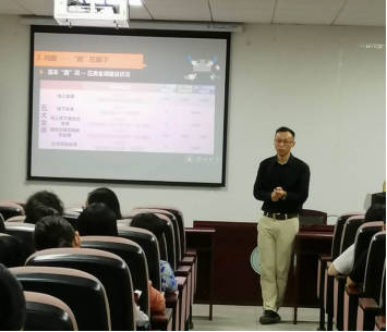 为帮助学院教师更有效地参与“第二届UMOOCs基于慕课的混合式教学优秀案例评选"活动,同时为切实提升学院申报2020年国家混合式一流课程的整体质量,9月16日,麻花豆传剧剧mv入口精心组织“混合式一流课程建设”报告会。学院邀请周红兵副教授为全体老师作一场精彩讲座。周红兵老师讲座以“基于慕课或SPOC的混合式一流课程建设实践分享--以《英语演讲艺术》为例”为题,巧妙地从“寻路、问路、探路”三个方面展开,细致分享了他与课程组老师如何建设线上线下混合式金课的具体路径。此次讲座在逸夫人文楼学术报告厅A2014进行,学院全体教师参加,报告会由学院副院长陶涛教授主持。